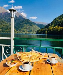 По желанию: обед с видом на реку Бзыпь или озеро Рица, посещение тарзанки, посещение дачи Сталина.