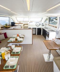 Верхняя палуба: Сзади палуба для дайвинга, открытая зона отдыха и столов с держателями для баллонов для дайвинга и местами для хранения для каждого гостя. Внутри салона обеденная и гостиная зона с большой камерой. Бар и кухня. На капитанском мостике лестница на нижнюю палубу. На носу большая зона для загара для отдыха и сидения с мягкими подушками.