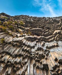 Базальтовые столбы, которые расположены в ущелье реки Азат, образовались из магмы, расколотой при остывании системой трещин на столбики шестиугольного сечения.