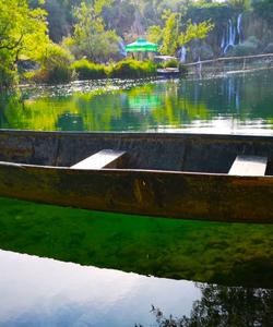 А ещё рядом с текией – один из самых восхитительных пейзажей Боснии и Герцеговины: здесь в глубокой пещере берёт начало изумрудная река Буна, а над всем этим нависает монументальная скала.