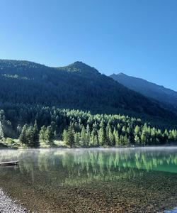 Сюда всегда можно прийти утром, чтобы полюбоваться, как озеро просыпается и над ним рождается туманная дымка.