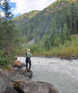 Сегодня тропа спускается к самой реке Аккем. Преодолеваем курумы - каменные осыпи вдоль реки - и находим на своем пути ручейки с прозрачной вкусной алтайской водой.