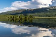В прозрачных водах озера отражаются облака, которые практически всегда несутся в небе над водной гладью.