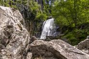 Водопад Корбу с берега озера не виден, но идти до него недолго - всего несколько минут ходьбы по дощатому тротуару и уже слышен шум падающей с высоты воды, и практически сразу же после этого перед глазами предстает сам водопад.