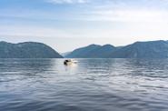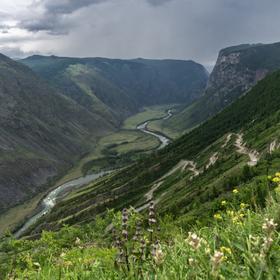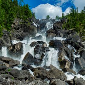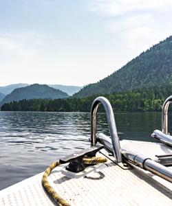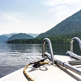 Переезд до с. Артыбаш, где на причале группа пересаживается в катер, который отвезет её сначала к водопаду Корбу, где помимо экскурсии группу ожидает обед, а потом и к южному берегу Телецкого озера.