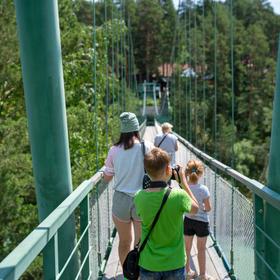 Нас ждет захватывающий путь по подвесному мосту к храму на острове Патмос на реке Катунь