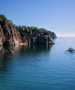Здесь спрятаны от посторонних глаз угрюмые и величественные утесы, Тажеранские пещеры с лабиринтами ходов, огромные валуны, сложенные природным строителем в скалы и наполненная ароматом трав байкальская степь. И конечно мы увидим Байкал. Здесь его называют морем.