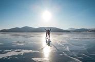 После — прогулка в пролив Ольхонские Ворота для тренировки катания на коньках по льду Байкала.