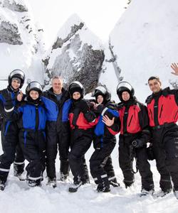 Вас проведут по маршруту опытные инструкторы, которые перед этим обучат вас управлению и проведут инструктаж. Снегоходный комбинезон из мембранной ткани, тёплые рукавицы и сапоги защитят от ветра и снега.