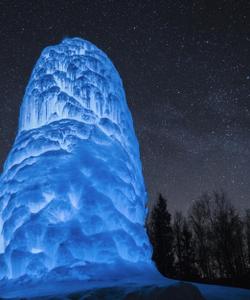 Внутрь можно пройти через прорубленный вход — зрелище незабываемое! Каждый год ледяной фонтан имеет разную форму, так как наледь намерзает всегда по-особенному. «Сосулька» застывает в зависимости от температуры и направления ветра.