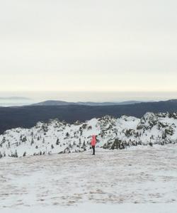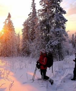 Маршрут несложный, так как тропа проходит по равнине и укатана бураном, но расслабляться не стоит, так как, сделав шаг в сторону, можно провалиться по пояс в пушистый снег или щель между огромными валунами знаменитой каменной реки, где как раз проходит экотропа.