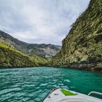• катание на катере на Чиркейском водохранилище.