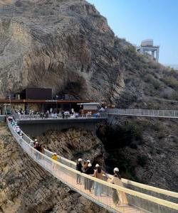 Пещера состоит из нескольких лабиринтов и красивых обзорных площадок, а мост, расположенный на высоте 60 метров, открывает потрясающие виды на реку Сулак и окружающие горы.