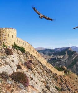 Здесь же зайдём в маленький интерактивный краеведческий музей, где можно будет не только подробно узнать историю и посмотреть старые фотографии этих мест, но и сделать фотосессию в национальных костюмах, папахах, бурках, с кувшинами и в традиционных дагестанских интерьерах. Рядом на возвышенности — мемориал "Журавли", на который мы поднимемся, чтобы увидеть всю горную панораму Гуниба.