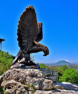 Из парка «Цветник» каменные ступени лестницы ведут в Нагорный парк, к месту Первоисточника — источника горячей серной воды. На груде камней установлена в 1901 г скульптура орла, терзающего змею. С 1995 года орёл — официальный символ и эмблема Кавказских Минеральных Вод.