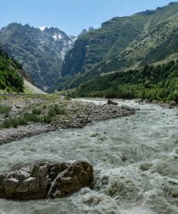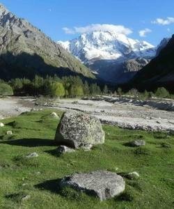 Выше по ущелью урочище Уштулу Главного Кавказского хребта с нетронутой природой.