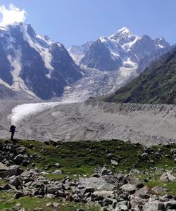 Далее через перевал Яков 3400 м окажемся в затерянной долине, откуда поднимемся на непростой перевал Коштан 1Б 3513 м. Откуда спустимся к могучему ледопаду Уллу-Ауз в ущелье Думала. Где прямо над нами будет виден «пятитысячник» Коштан-тау 5152 м.