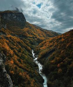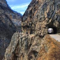 Черекская теснина. По пути встречаются руины средневековых крепостей, древние склепы, нависающие скалы и два тоннеля для объезда опасной горной дороги. На дне ущелья протекает горная река Черек.
