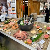 Это редкий шанс попробовать селедочку, устрицы, мидии, нерку, треску, скумбрию, тунец, камбалу, салаку, гребешки, крабов, кальмаров, осьминогов, лангустины, щуку, пеламиду и, наконец, свежайшую балтийскую корюшку в одном месте.