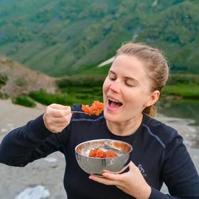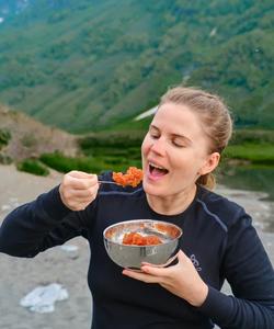 Мы не ходим под тяжёлыми походными рюкзаками, все вещи передвигаются на транспорте (автомобиль и тримараны). Все радиалки — дневные с маленькими штурмовыми рюкзачками.