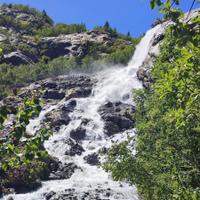 Один из живописнейших водопадов Домбая, который стекает из огромнейшего ледника