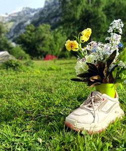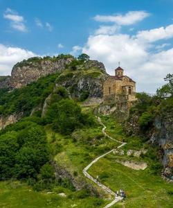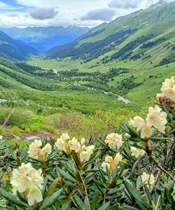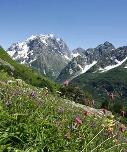 Наша дневная цель на 600 м выше по вертикали, и преодолеем мы их за несколько часов. Чем выше, тем меньше растительности. Деревья остались далеко позади и нас окружают только редкие травянистые, цветы и колючки. Но недостаток растительности с лихвой компенсируется потрясающими видами кавказских гор.