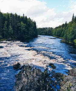 Инструктор принимает решение о прохождении или обносе порогов Кеняйкоски и Кумио в зависимости от общей готовности группы и уровня воды.