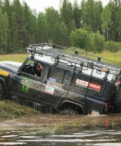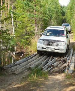 17:00 Сворачиваем с асфальта и въезжаем на лесную дорогу, которая становится труднопроходимой для обычного транспорта — преодолеваем её.