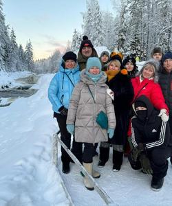 Отведав карельского чая, отправимся на улицу знакомиться с весёлыми и озорными собачками хаски. Братец Lumikelloja «запряжёт» гостей в ездовую упряжку и научит вас правильной технике управления санями!