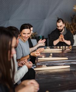 Далее вас ждет мастер-класс по приготовлению мусса из манной крупы – традиционного рецепта карельской кухни. Вы узнаете о древней технологии этого десерта, попробуете сами приготовить его «по-старинке», а к ужину наши повара подадут вам этот десерт в современном прочтении.