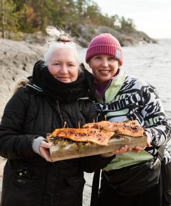 После восхождения и прогулки вас ждет возвращение в глэмпинг и вкусный обед на природе у костра с дарами земли. Во время обеда шеф-повар известного ресторана высокой карельской кухни «В КарелииЕсть» приготовит для вас сытную грибную похлёбку с мясом лося.