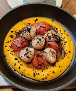 Примерное меню: салат Куэльпорр с олениной, суп из лесных грибов, пельмени с крабом, таежный травяной сбор.