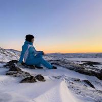 В Териберке мы все вместе посетим бескрайний песчаный пляж, таинственное кладбище кораблей, каменный пляж «Яйца дракона», живописный Батарейский водопад. До каменного пляжа и водопада в снежный период добираемся на санях (за доплату около 1500-2500 руб./чел., уточняйте при бронировании), в иное время — пешком (вся прогулка займет примерно 2,5 часа). Никуда не спешим.