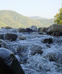 Мы находимся в изумрудной долине, окруженной лесистыми горами с выходом к морю. Чистая река, субтропический лес.