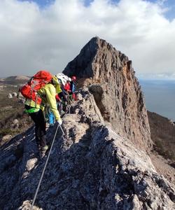 Прохождение оборудованного скального маршрута на горе Ильяс-Кая с использованием металлических конструкций