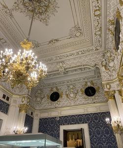 Золотые орнаменты на стенах, изысканная лепнина, мраморные колонны и лестницы создают ощущение, будто вы стали частью величественного спектакля.
