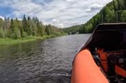Водный переход на моторных лодках в пос. Усьва (около 15-20 минут).