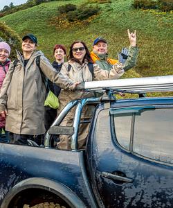 На машинах мы подъедем к началу пешей тропы. Длина пешего подъема около 3 км, это около 1,5 часов в один конец. Мы поднимемся примерно до половины высоты вулкана, до фумарольных полей с активными сольфатарами ярко-желтого цвета.
