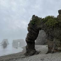 Пешая прогулка вдоль побережья Охотского моря — удивительной красоты величественные каменные арки, колонны и кекуры, созданные ветром и морскими волнами, гроты и птичьи базары мыса «Птичий».