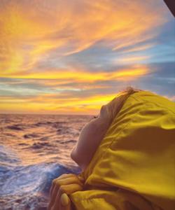 Теплоход следует к острову Кунашир с остановкой у острова Шикотан.