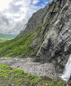 Заезжаем к древнему воину — Уастырджи, который высечен в скале и при виде него сердце пускается вскачь, так как он парит в воздухе, нарушая все законы физики.