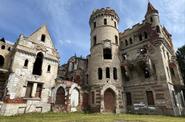 Особенно восхищённых гостей поражали готические мотивы усадьбы, не характерные для России — огромный рыцарский замок с башнями и стрельчатыми окнами, который окружал французский регулярный парк с километровым каскадом зеркальных прудов. Над созданием паркового ансамбля трудились лучшие приглашённые садовники и декораторы из Европы.