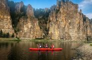 В рамках тура вы посетите уникальные природные объекты под эгидой ЮНЕСКО — Ленские и Синские столбы. Однако главная жемчужина маршрута — река Синяя, левый приток Лены и одна из самых красивых рек Якутии. Ручьи и малые реки, стекающие с плато, прорезают её бассейн глубокими ущельями и живописными долинами, создавая постоянно меняющиеся пейзажи. В жаркое якутское лето Синяя — идеальное место для отдыха: свежий воздух, чистая вода, которую можно пить прямо из реки, купание и рыбалка.