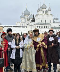 Целый день «по-царски» в Ростове Великом, с праздничной величальной встречей самим царем Иваном Васильевичем и царицей Марфой Васильевной, с перевоплощениями, дискотекой князя Милославского и вкусным угощением.