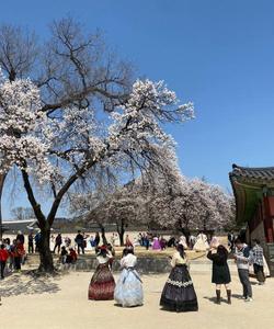 Дальше — идем на экскурсию во дворец Кенбоккун, берем напрокат очаровательные костюмы ханбок, перевоплощаемся в кореяночек))